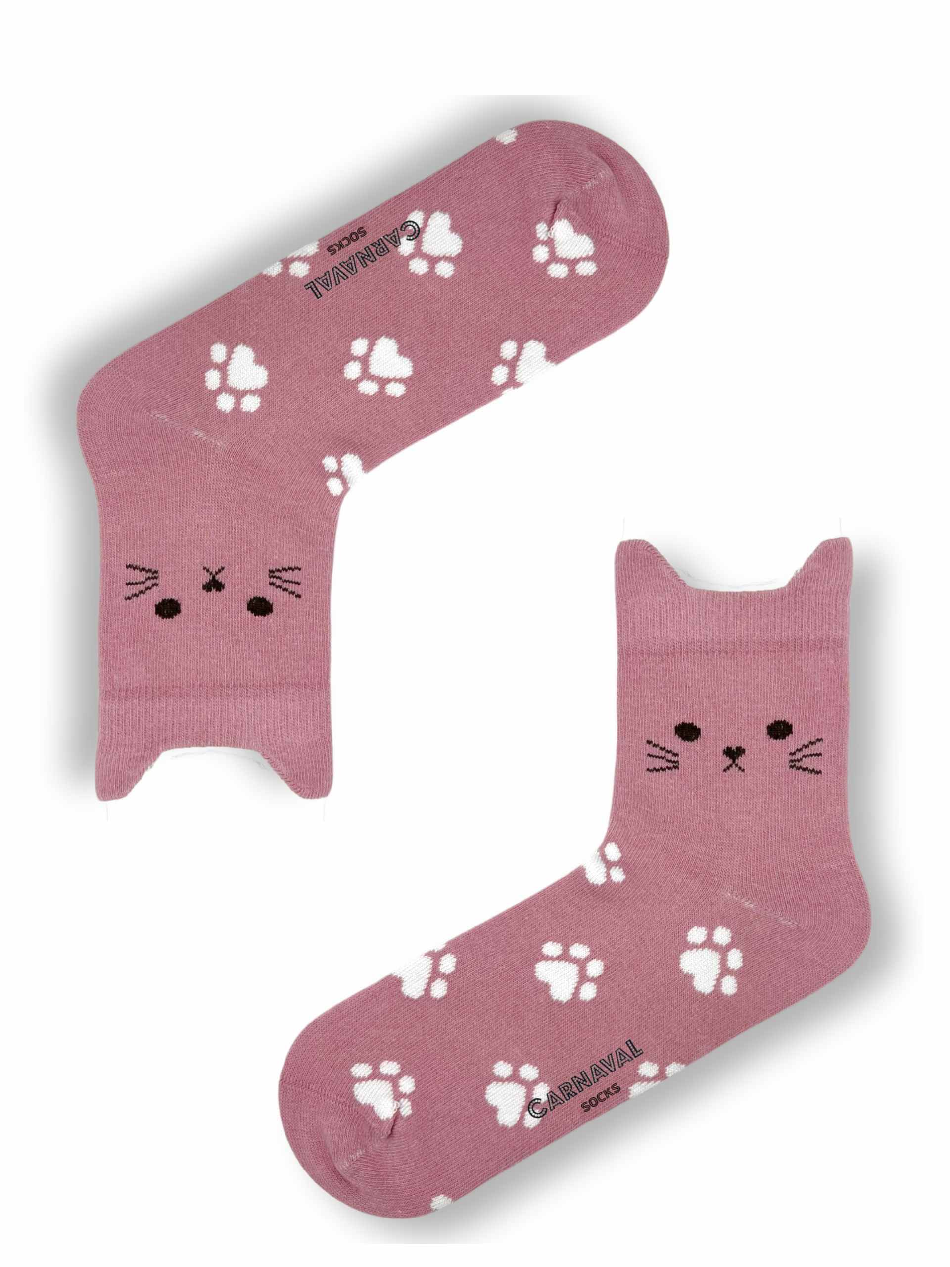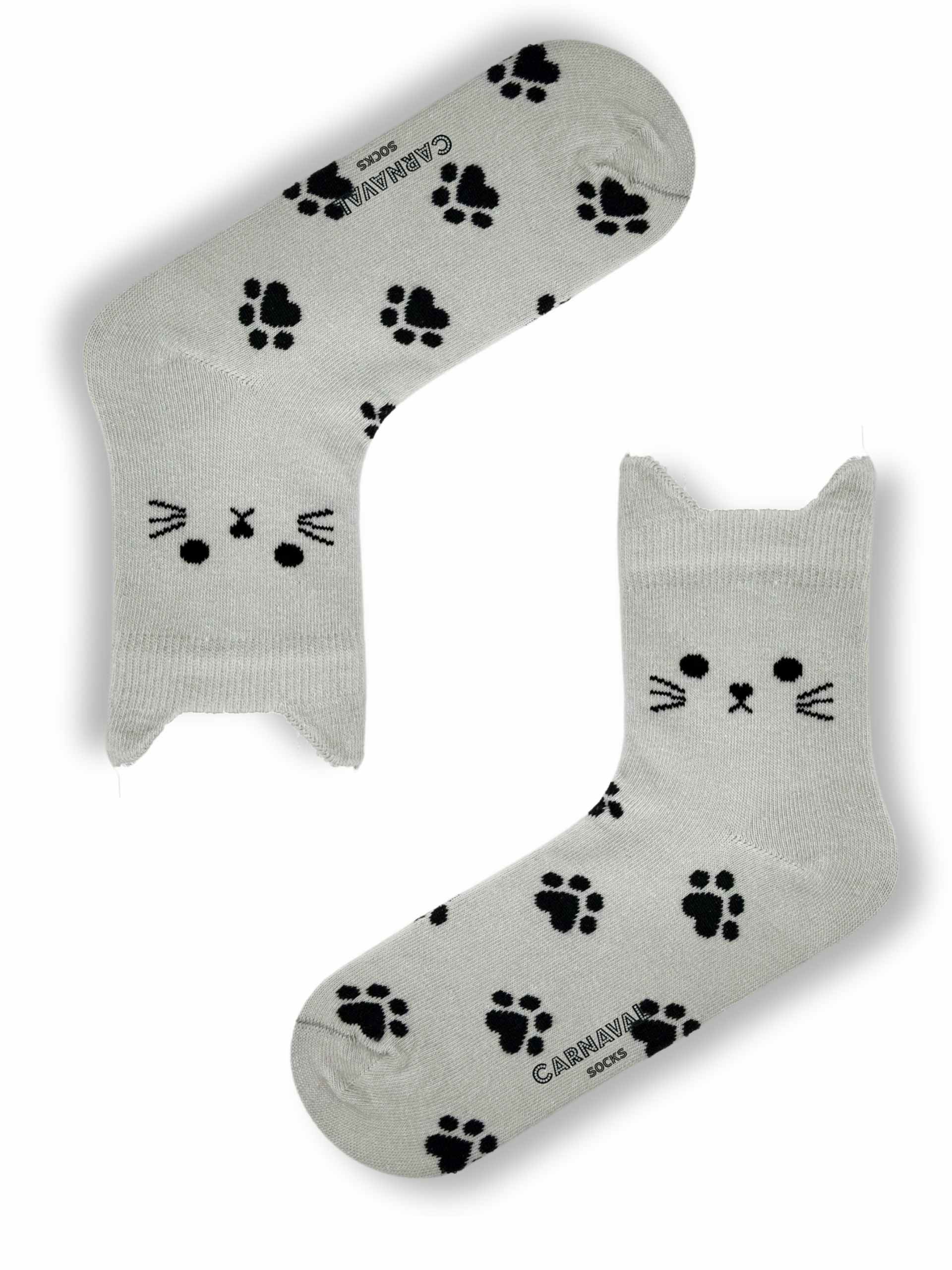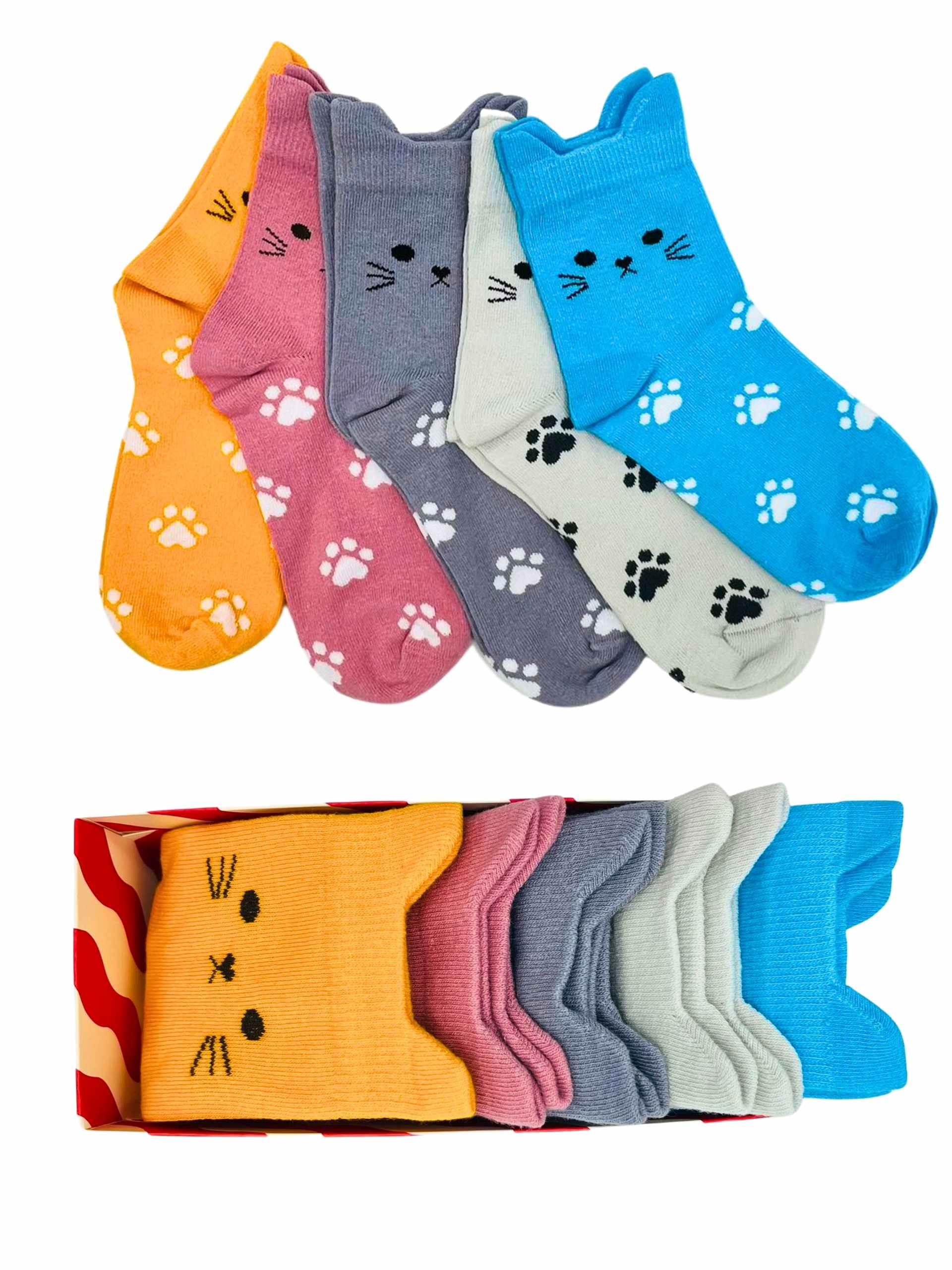 Kedi figürlü kulak detayları ve pati desenleriyle öne çıkan bu çoraplar, renkli kombinleri sevenler için özel olarak tasarlanmıştır.