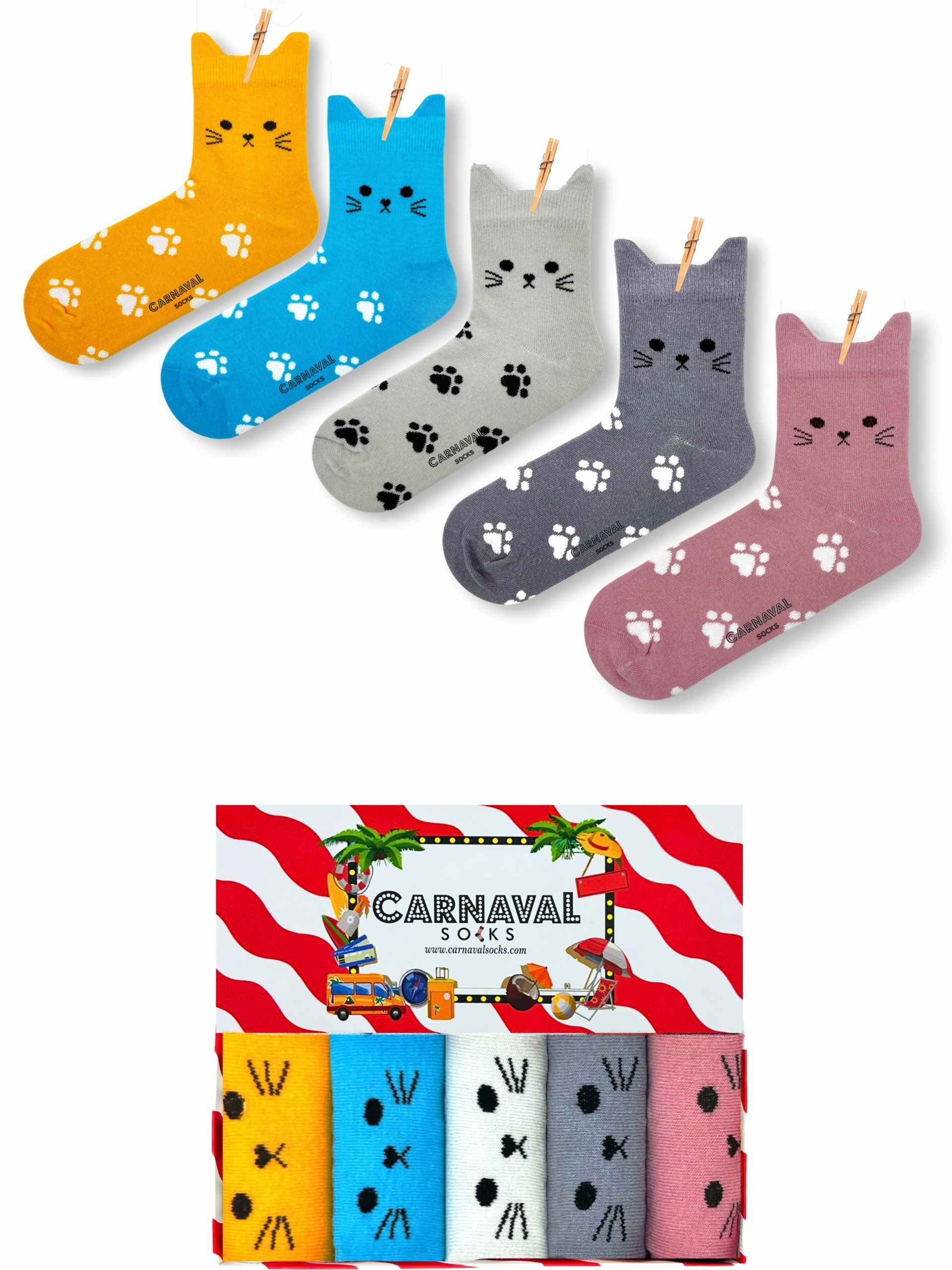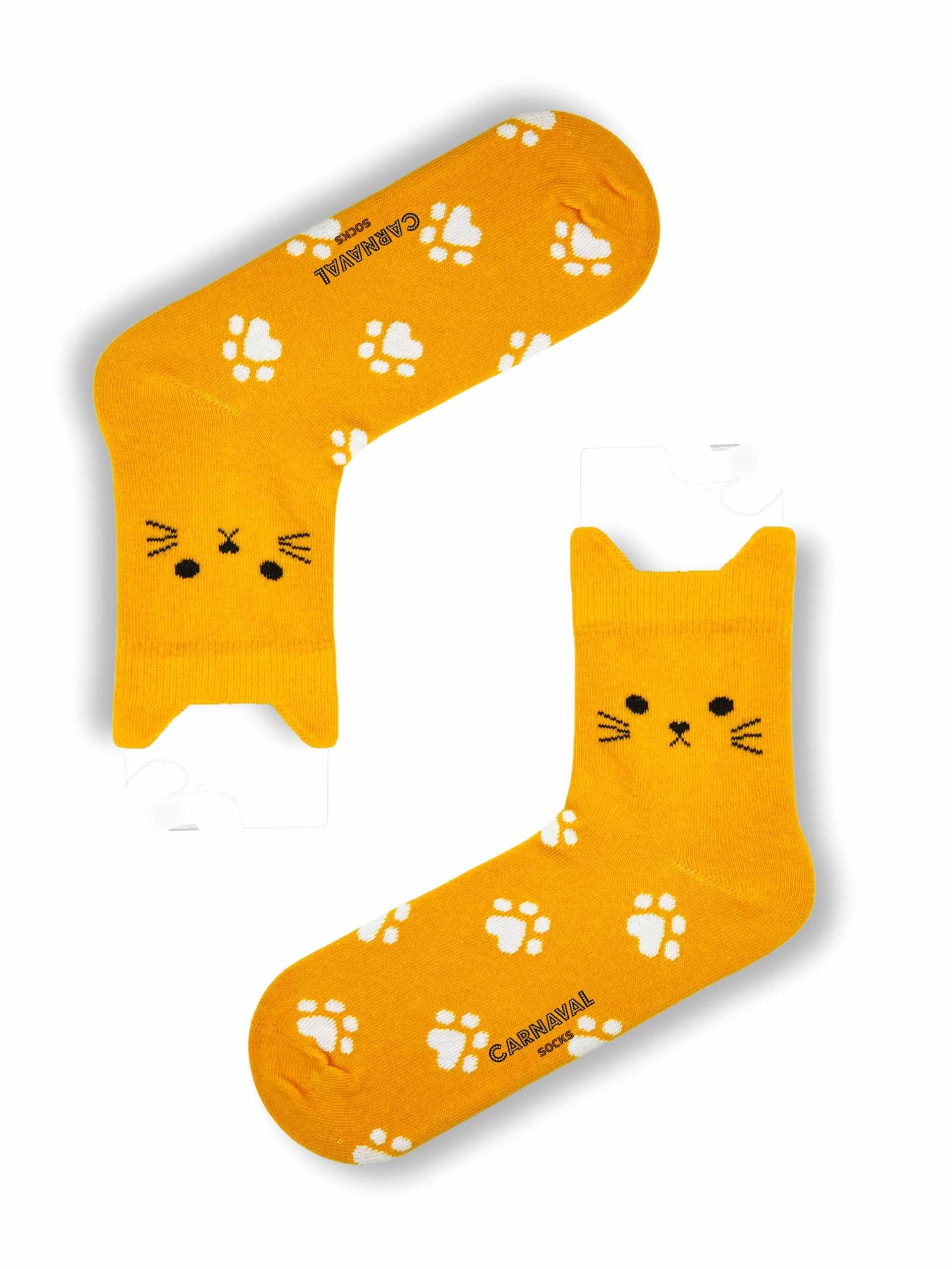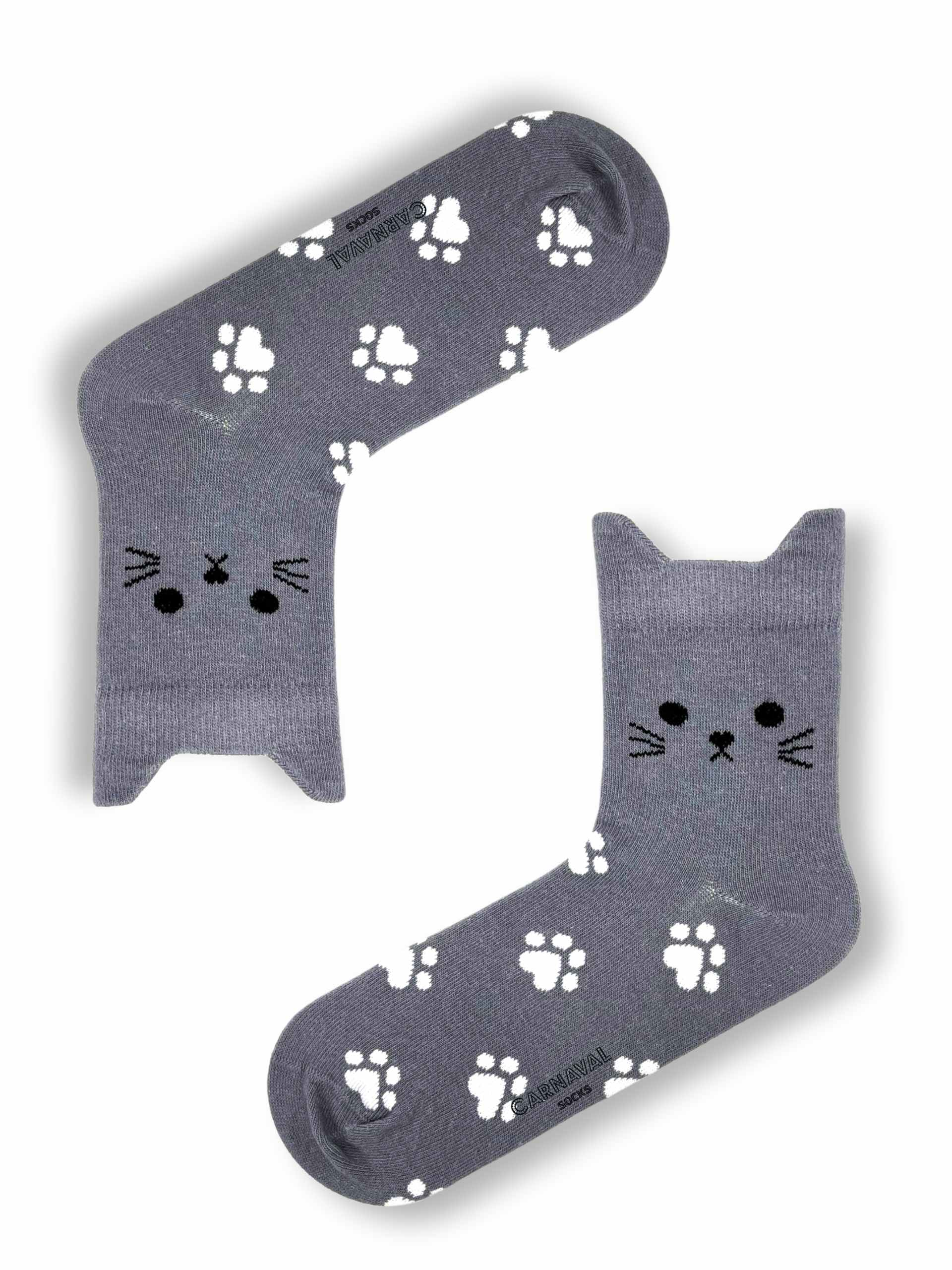 Kedi figürlü kulak detayları ve pati desenleriyle öne çıkan bu çoraplar, renkli kombinleri sevenler için özel olarak tasarlanmıştır.