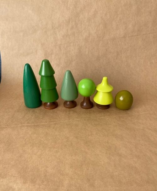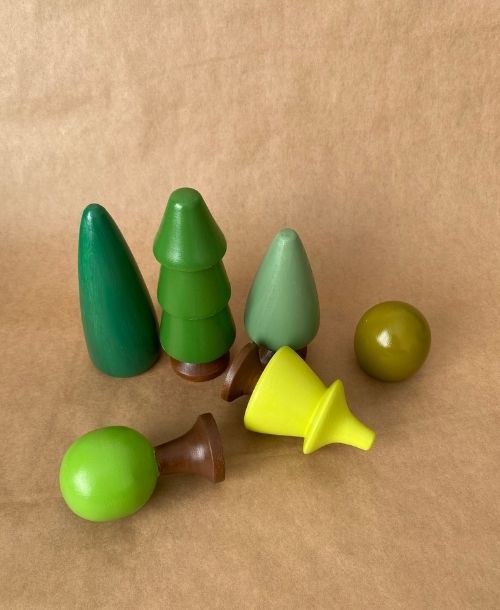 Tamamen el işçiliğiyle hazırlanan bu set, minimal tasarımıyla Waldorf pedagojisinden ilham alır. Çocuklar, bu ağaç figürleriyle doğa temalı hikayeler kurabilir, orman oyunları oluşturabilir veya ev, okul ya da kreş dekorasyonlarında kullanabilir.