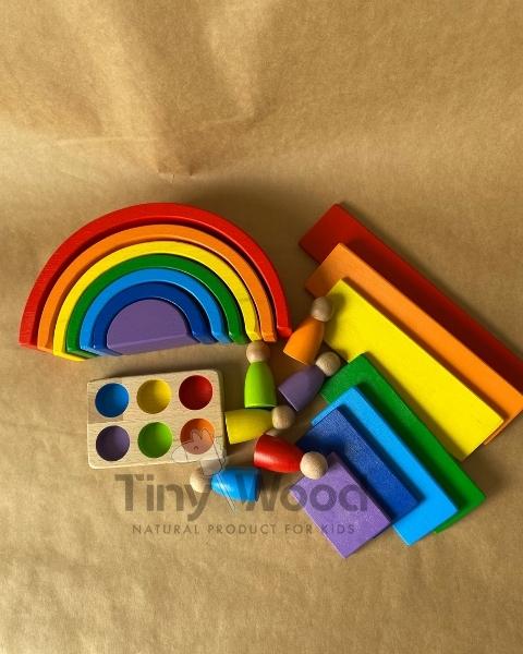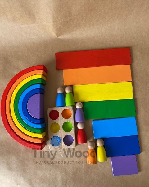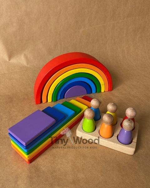7’li Waldorf Gökkuşağı, Düz Tabla ve 6’lı İnsan Figürleri Oyun Seti