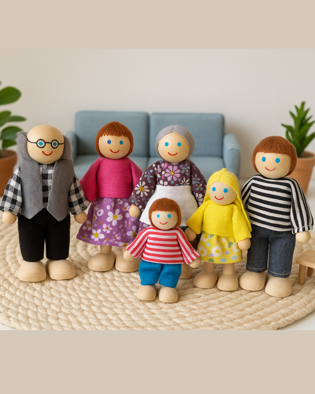 Ahşap Aile Kukla Seti, çocukların hayal güçlerini ve sosyal becerilerini geliştirmelerine yardımcı olacak harika bir açık uçlu oyun aracıdır. Doğal ahşaptan üretilmiş bu set; anne, baba, çocuk gibi karakterlerle hikâye anlatımını destekler, empati kurma becerisi kazandırır.