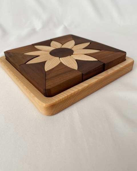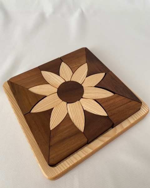 Ceviz ve ıhlamur ağacının doğal dokusuyla üretilen bu puzzle’da hiçbir cila, vernik veya toksik madde kullanılmamıştır.