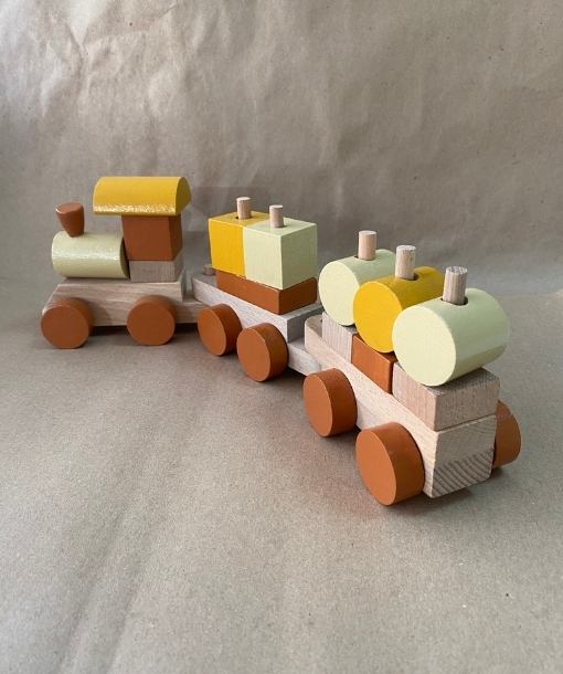 Ahşap Bloklu Eğitici Bul-Tak Tren Oyuncak Seti