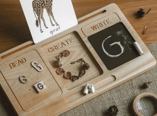 Ahşap Öğrenme Tahtası, çocukların harfleri tanımasını, yazma pratiği yapmasını ve erken dil gelişimini desteklemek için tasarlanmış doğal bir Montessori materyalidir.