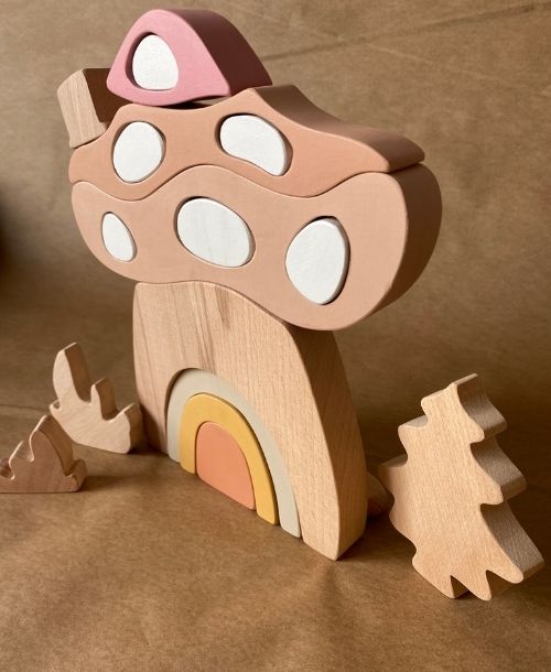Ahşap oyuncak Mantar Ev Puzzle Eğitsel Oyuncak
