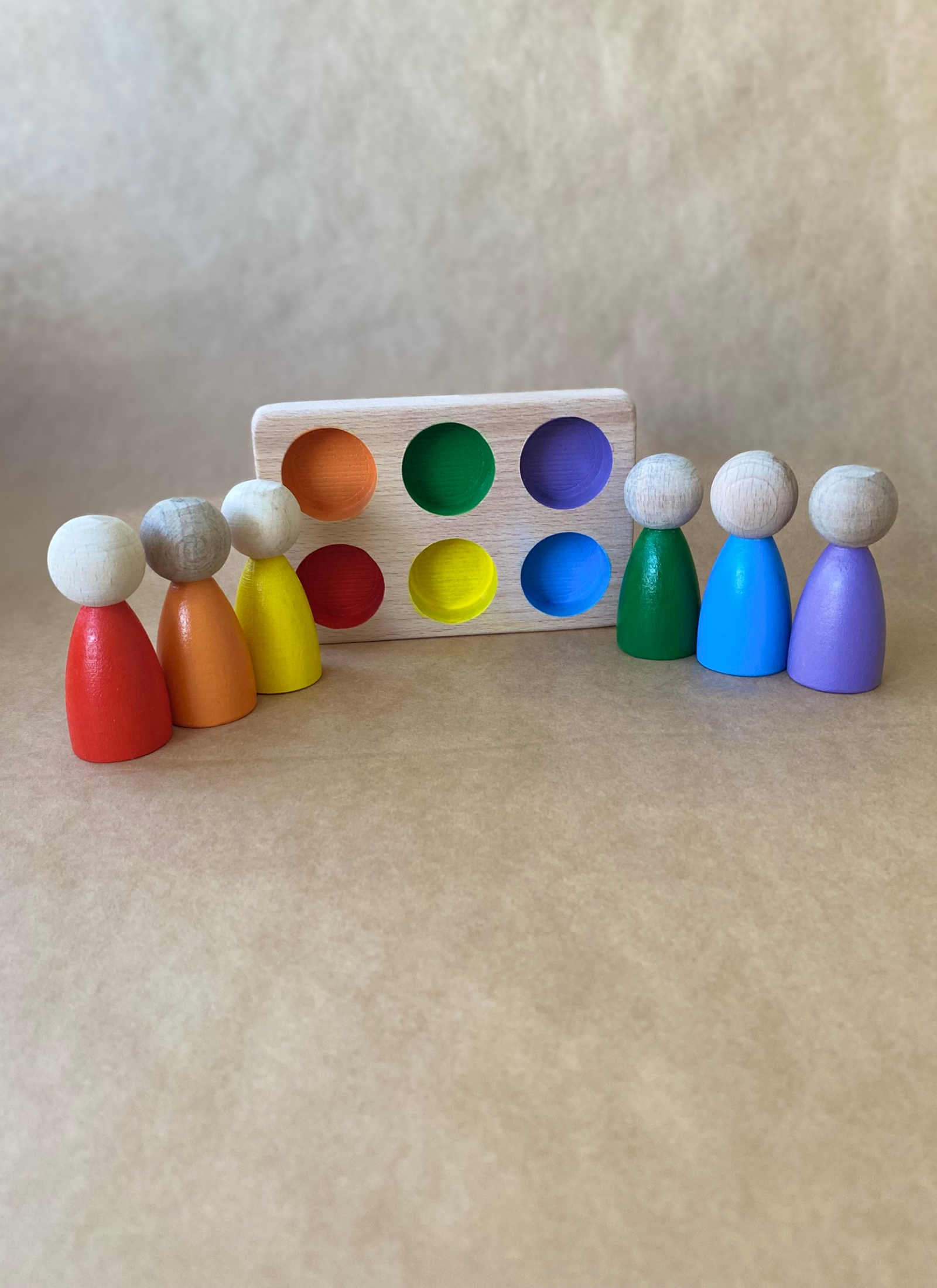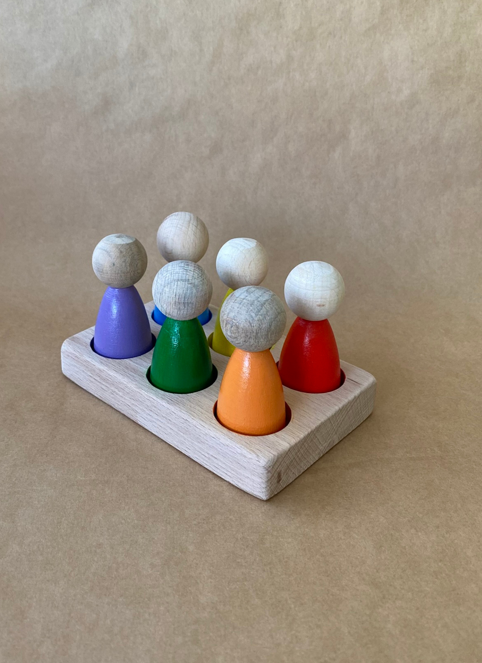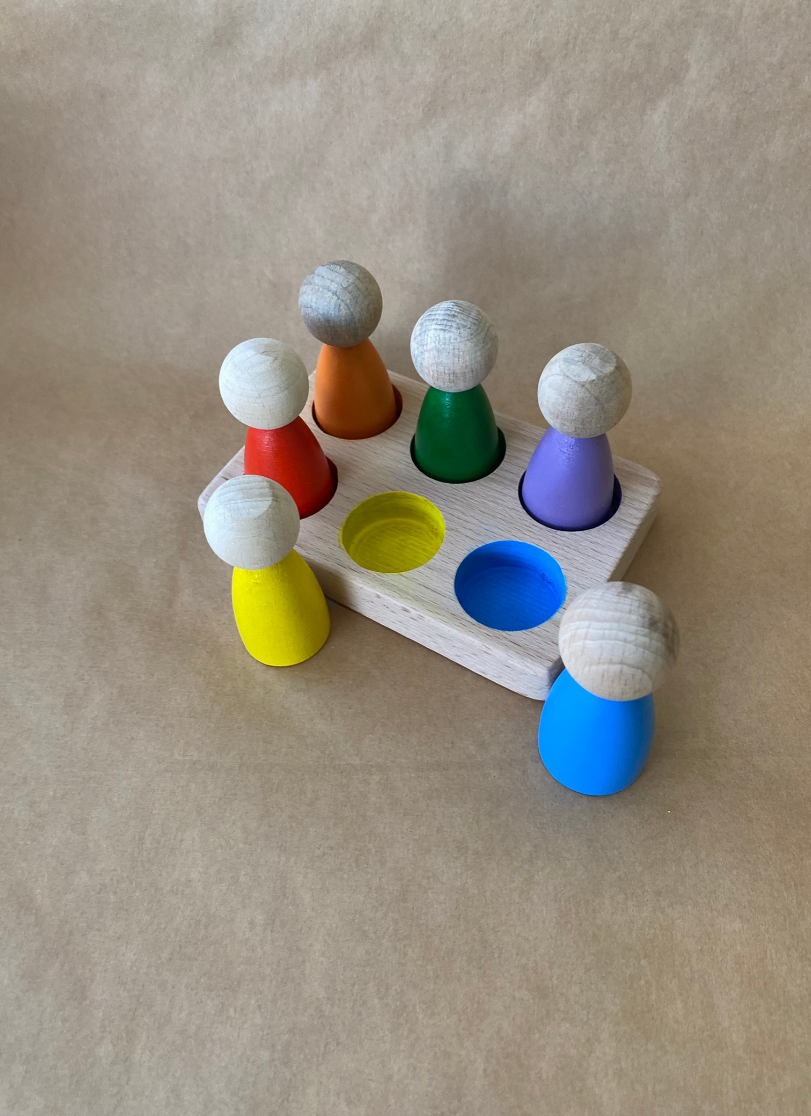 6’lı Peg Bebek Renk Eşleştirme Oyuncağı, çocukların renkleri tanımasını, eşleştirme yapmasını ve ince motor becerilerini geliştirmesini destekleyen Montessori uyumlu bir ahşap oyuncaktır.
