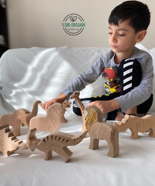 Her biri özenle zımparalanmış doğal ahşap figürler, çocuklara güvenli ve keyifli bir oyun deneyimi sunar.