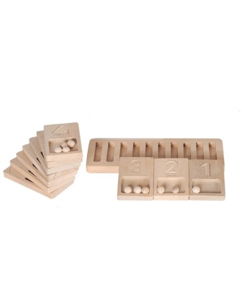 İçerik: 11 parça sayı tablası + 55 adet ahşap boncuk (sayma topu).