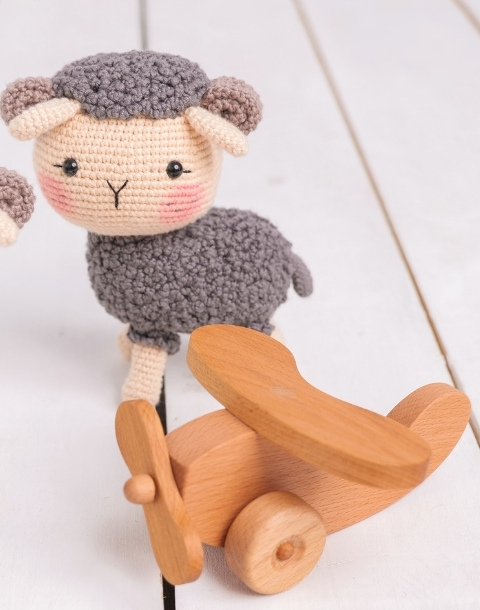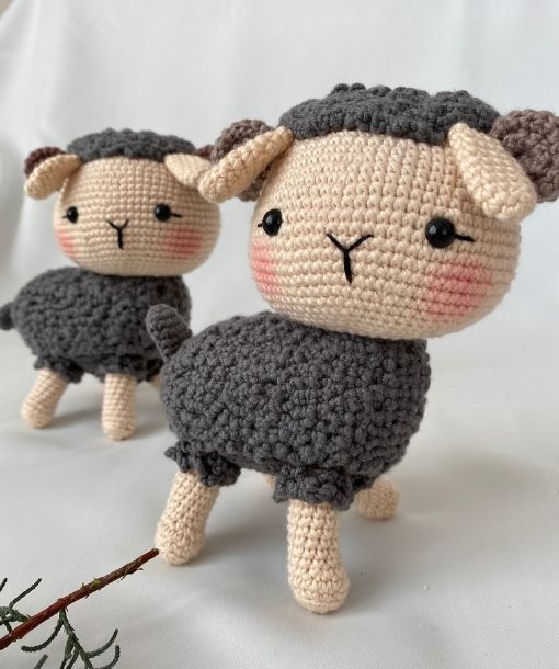 Amigurumi Kuzu, tamamen el emeğiyle örülmüş, organik iplikler kullanılarak üretilmiş sevimli bir örgü oyuncaktır.