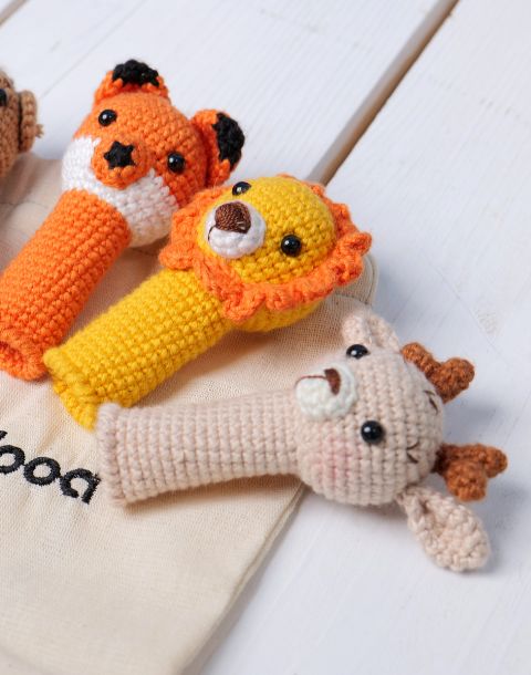 Her biri özenle örülmüş bu parmak kuklalar, organik pamuk ipliklerle hazırlanmıştır ve organik oyuncak sınıfındadır.