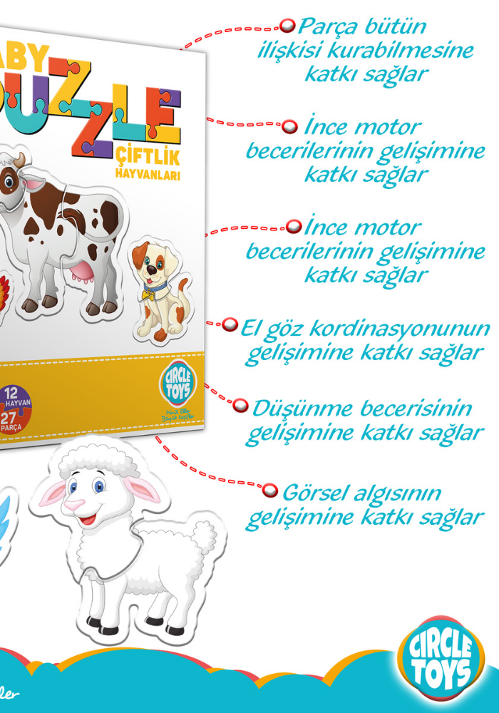 Baby Puzzle Çiftlik Hayvanları Seti, miniklerin ilk yapboz deneyimi için özel olarak hazırlanmıştır.