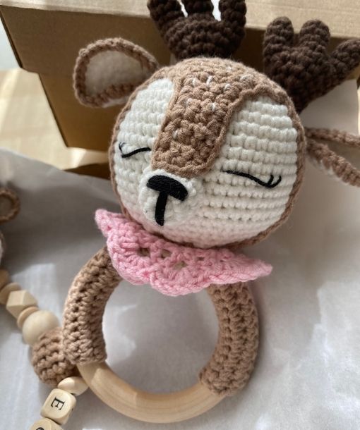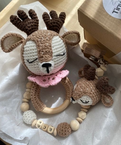 Bambi Bebek Hediye Seti, organik ipler kullanılarak el emeğiyle üretilmiş, bebek sağlığına uygun doğal bir hediye setidir. Oeko-Tex sertifikalı iplikler ile örülen bu özel set, zararlı kimyasallar içermez ve organik oyuncak sınıfındadır.