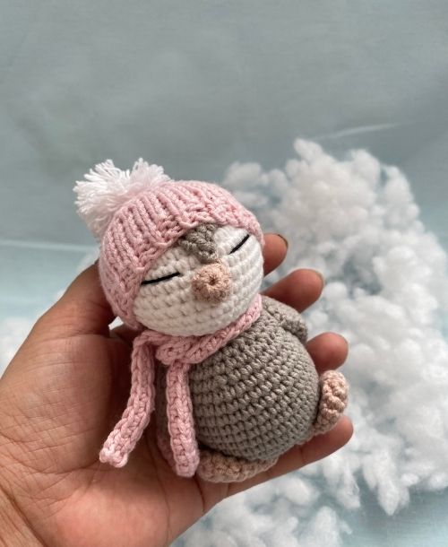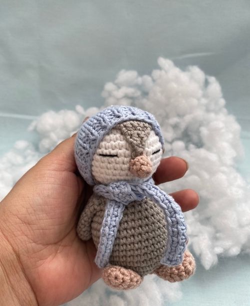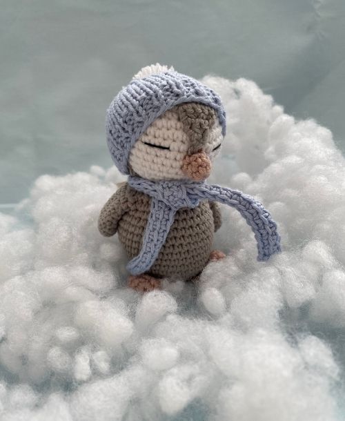 El emeğiyle özenle örülmüş Amigurumi Penguen, bebekler için güvenli, doğal ve sevimli bir oyun arkadaşıdır.