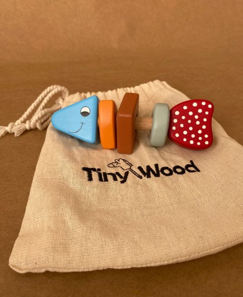 Tiny Wood’un el işçiliği ile üretilen doğal ahşap balık çıngırak, bebeklerin motor becerilerini geliştirmek ve duyusal keşiflerini desteklemek için özel olarak tasarlanmıştır.