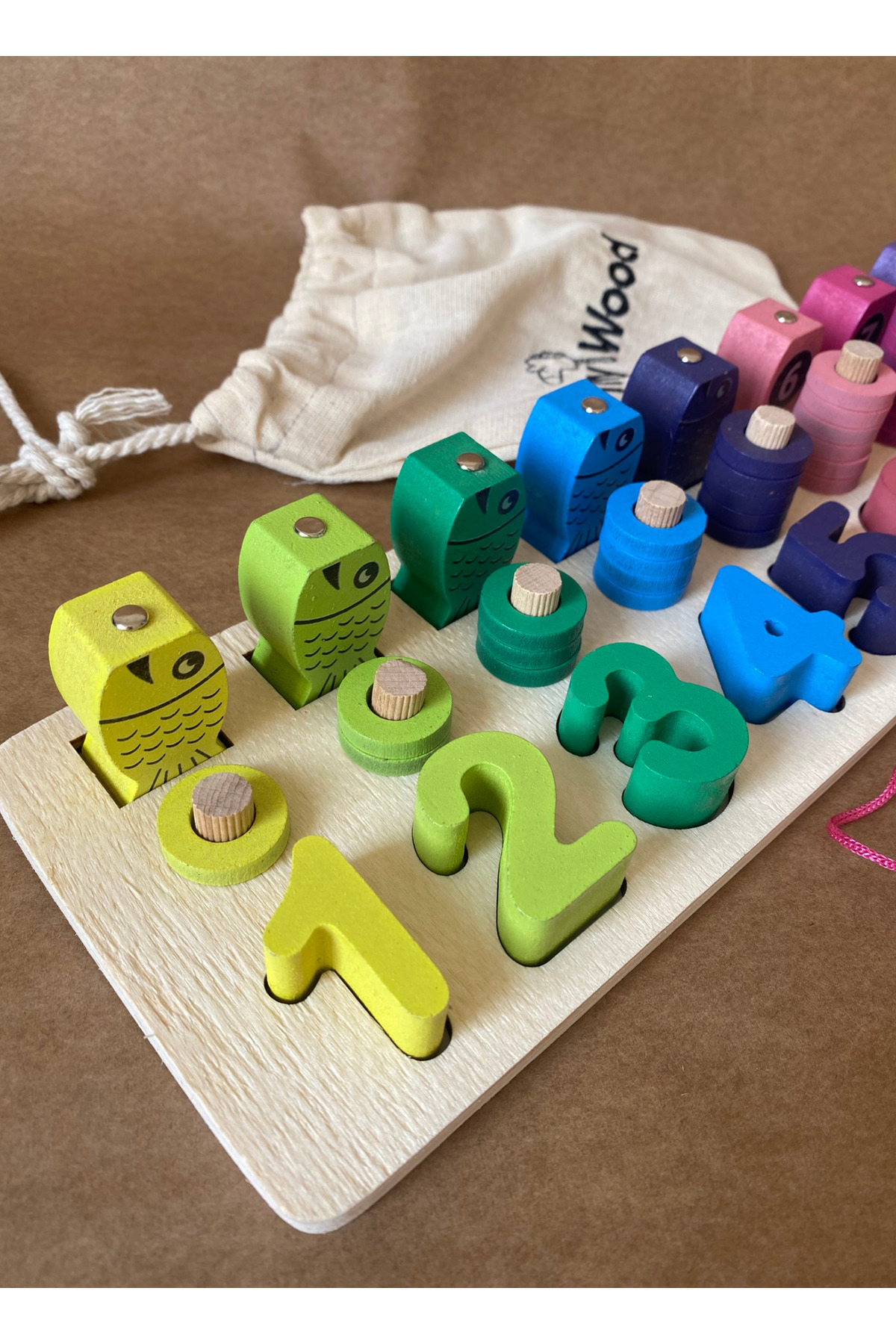 Çocukların el-göz koordinasyonunu, sayı sayma becerilerini ve ince motor gelişimini destekleyen ahşap Montessori eğitim oyuncağı!