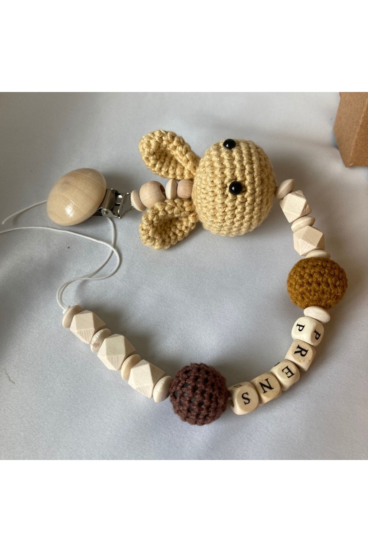 Organik emzik askısı i bebeğin ismine özel olarak hazırlanmaktadır. Siparişiniz sonrası bebek ismini bize mesaj olarak iletmenizi rica ederiz.