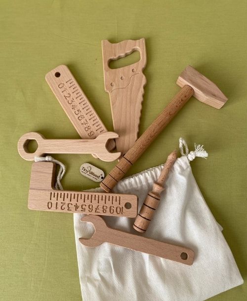Oyuncağımızın kesme, zımparalama ve boyama dahil her aşaması el emeği ile yapılmaktadır. ; Ahşap oyuncaklarımız el yapımı olduğundan görsel olarak ufak farklılıklar (renk farklılıkları, ağaç budakları vb.) olabilir. ; MALZEME: Kayın ağacı YAŞ 1 YAŞ VE ÜZERİ Ölçü Testere 20 cm *7 cm*1 cm metre 16 cm *4 cmx 1 cm t cetvel 16x7 cm x1 cm vida sökücüler 16x5 cm x 1 cm çekiç 20 cm x 8 cm çap 1,5 cm kontrol kalemi 12 cm çap 2 cm;