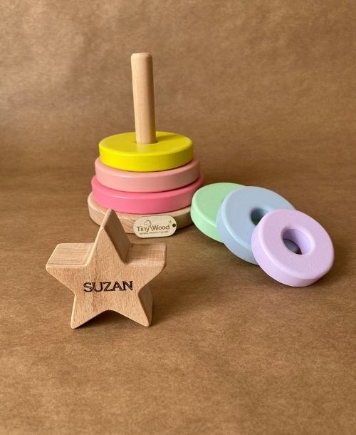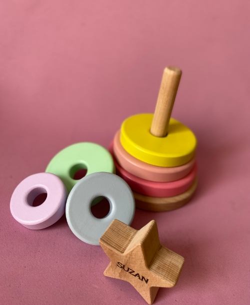 Ahşap Renkli Yıldız Kule, 1883 yılında Fransız matematikçi Édouard Lucas tarafından geliştirilen klasik Hanoi Kulesi oyunundan ilham alınarak tasarlanmıştır. Oyunun amacı, tüm disk grubunu belirli kurallara uyarak diğer direğe taşımak ve doğru şekilde sıralamaktır.