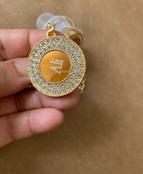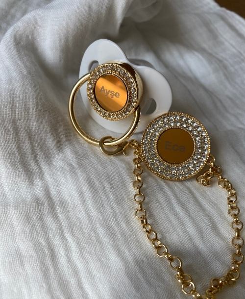 Emzik ve emzik zinciri zirkon taşlarla süslenmiştir