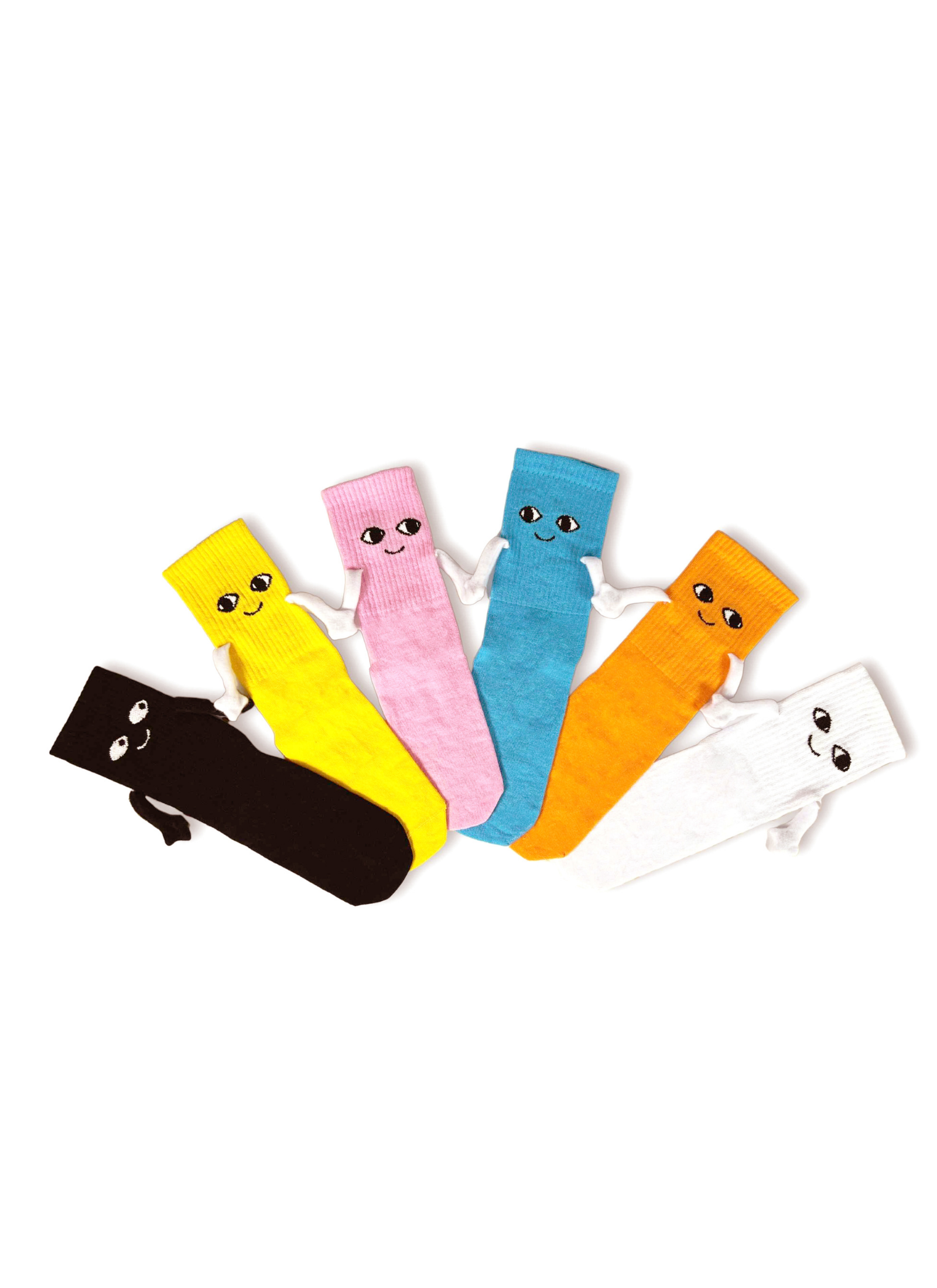 Bilek kısmındaki mıknatıslar sayesinde çoraplar birbirine “elele tutuşur” ve adeta halay çeken sevimli karakterler gibi görünür. Sosyal medya paylaşımlarında, hediye kutularında ve günlük kullanımda dikkat çeken eğlenceli bir aksesuardır.