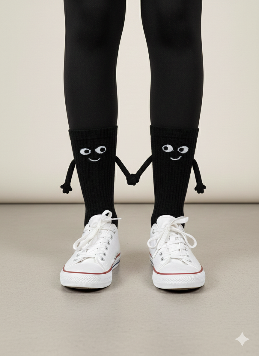 Bilek kısmındaki mıknatıslar sayesinde çoraplar birbirine “elele tutuşur” ve adeta halay çeken sevimli karakterler gibi görünür. Sosyal medya paylaşımlarında, hediye kutularında ve günlük kullanımda dikkat çeken eğlenceli bir aksesuardır.