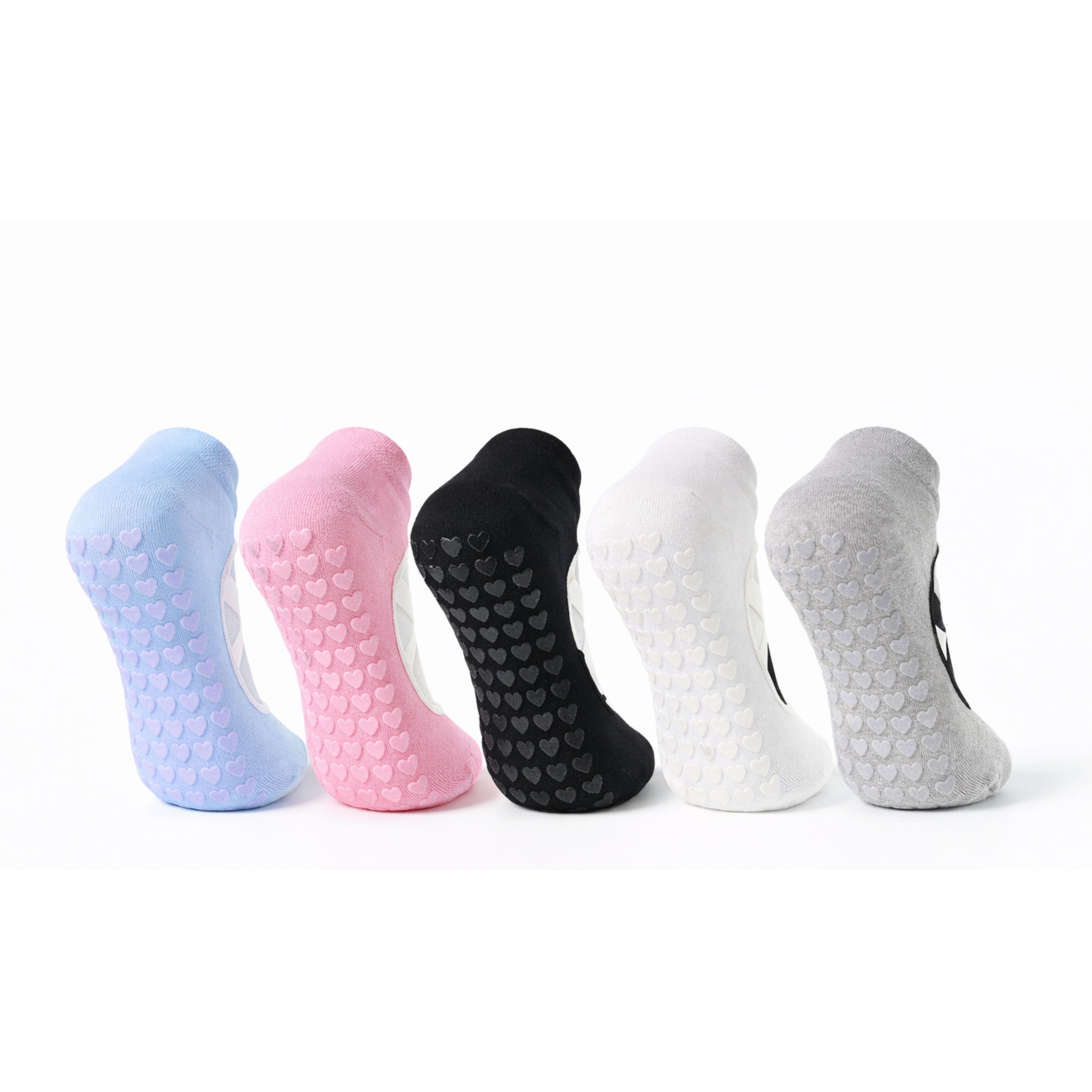Kaymaz tabanlı pilates ve yoga patik çorap seti, spor ve ev kullanımı için özel olarak tasarlanmıştır. Alt tabanındaki silikon kaydırmaz yüzey sayesinde pilates, yoga, barre ve fitness egzersizleri sırasında güvenli kullanım sağlar.