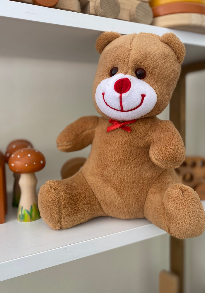 Kırmızı burun detayıyla dikkat çeken Sevimli Peluş Ayıcık, yumuşak dokusu ve sıcak tasarımıyla çocukların en sevdiği uyku ve oyun arkadaşı olmaya adaydır.
