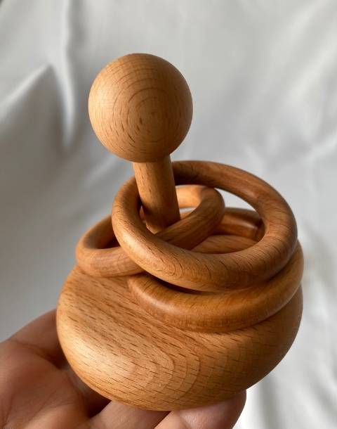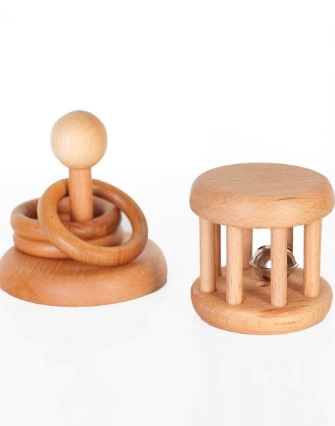 Ahşap Çıngırak: Sallandığında yumuşak ses çıkarır, işitsel farkındalık ve dikkat gelişimini destekler.