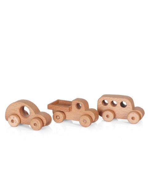 Montessori Doğal Ahşap Oyuncak Araç Seti, çocukların hayal gücünü, el-göz koordinasyonunu ve ince motor becerilerini destekleyen açık uçlu bir oyuncaktır.