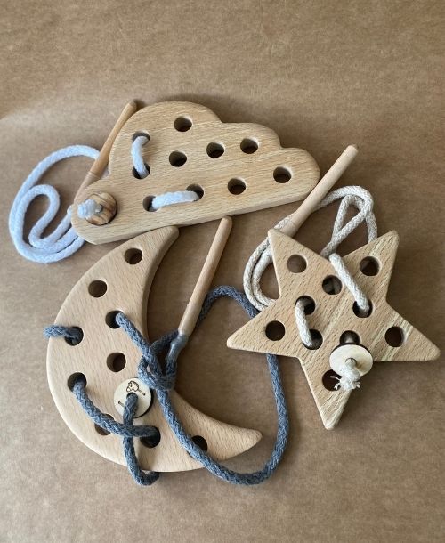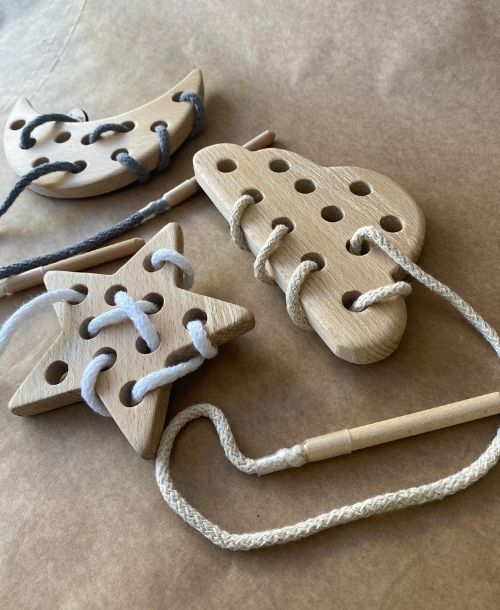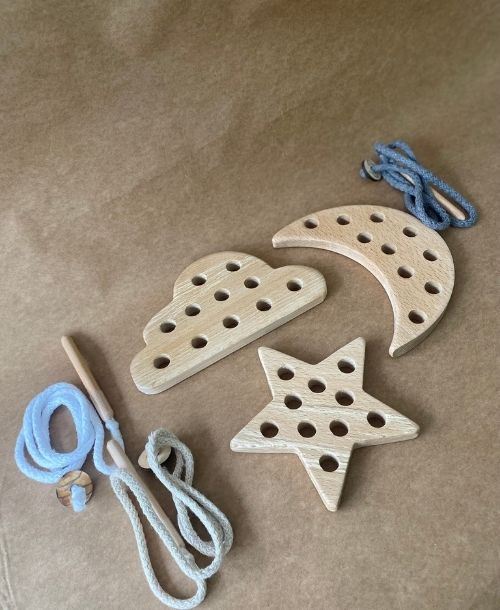 Tiny Wood’un doğallığını yansıtan Montessori Eğitici Oyuncak İp Geçirme 3’lü Gökyüzü Seti, çocukların ince motor becerilerini destekleyen harika bir eğitim materyalidir.