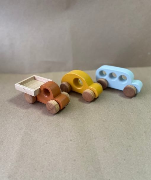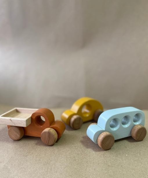 Ahşap Araba Oyuncak Seti | Montessori Doğal Ahşap Arabalar | Tiny Wood