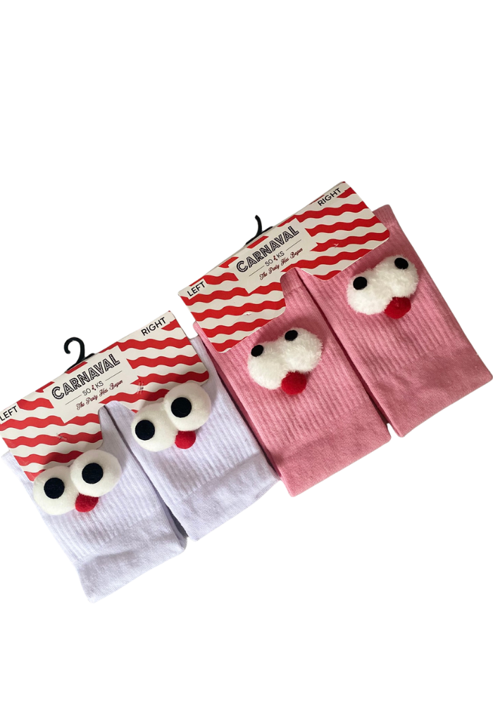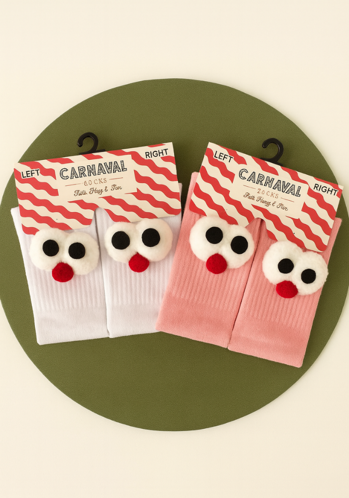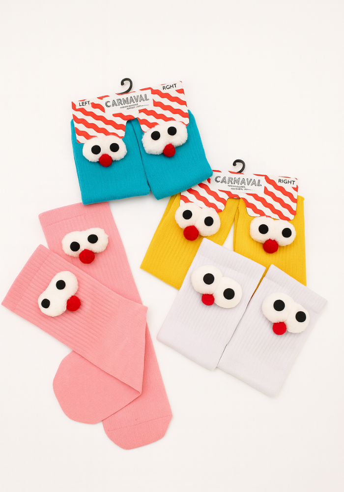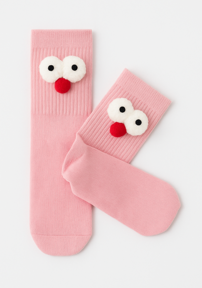 Göz detaylarıyla eğlenceli bir görünüm sunan bu çoraplar, yumuşak dokulu pamuk karışımı kumaşıyla gün boyu rahatlık sağlar.