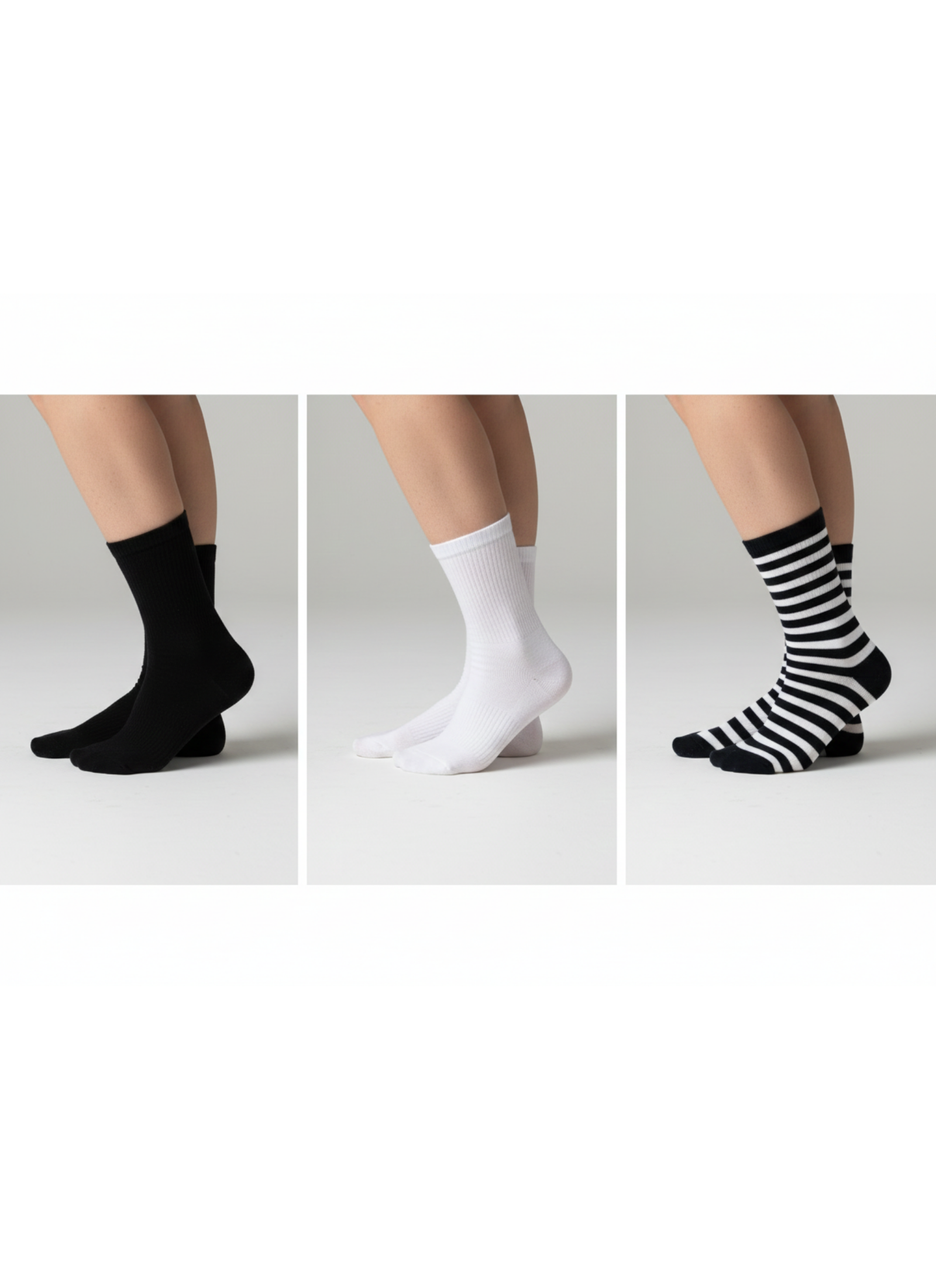 Zamansız siyah ve beyaz renklerden oluşan bu 3’lü unisex spor çorap seti, günlük stil ve spor kombinleri için ideal bir tercihtir.