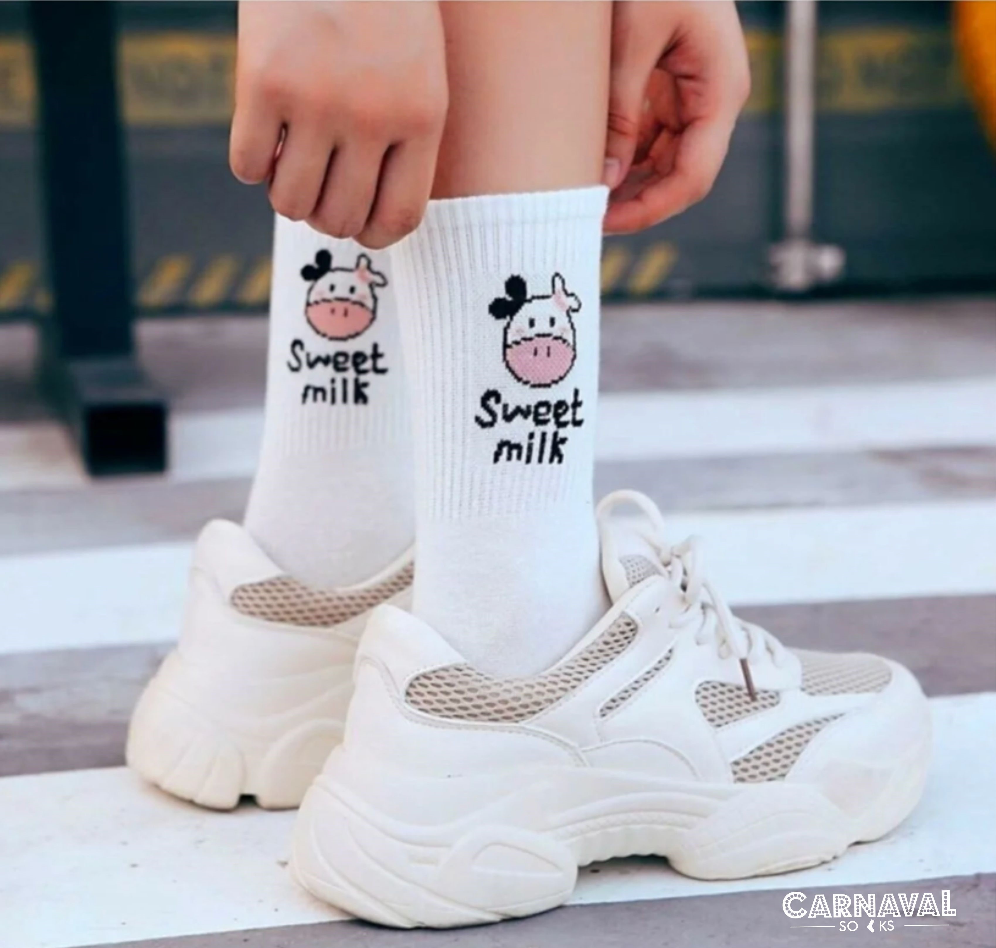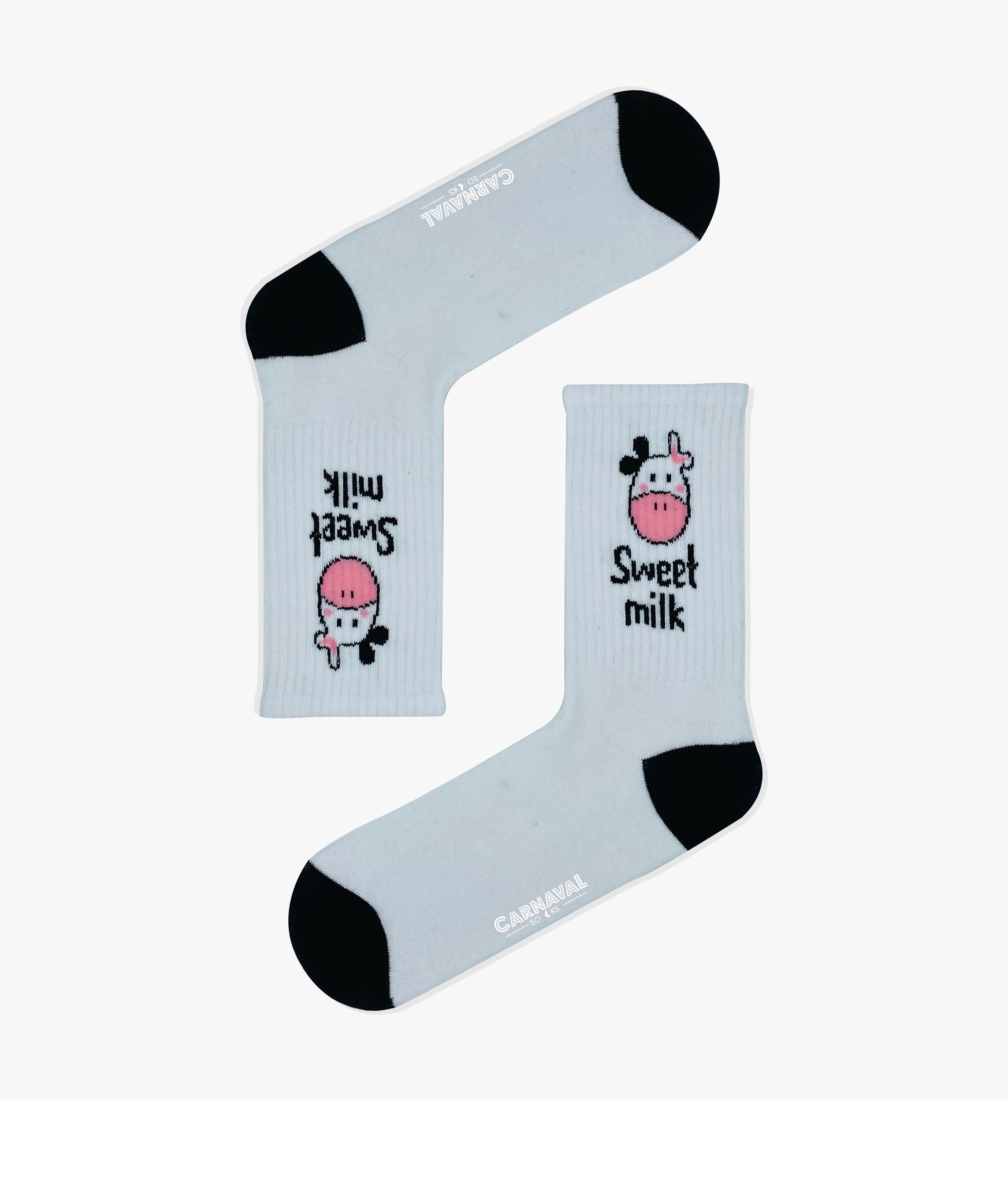 İnek ve zebra desenleri, çizgili model ve “Sweet Milk” yazılı tasarımıyla sade renklerin dikkat çekici uyumunu sunar.