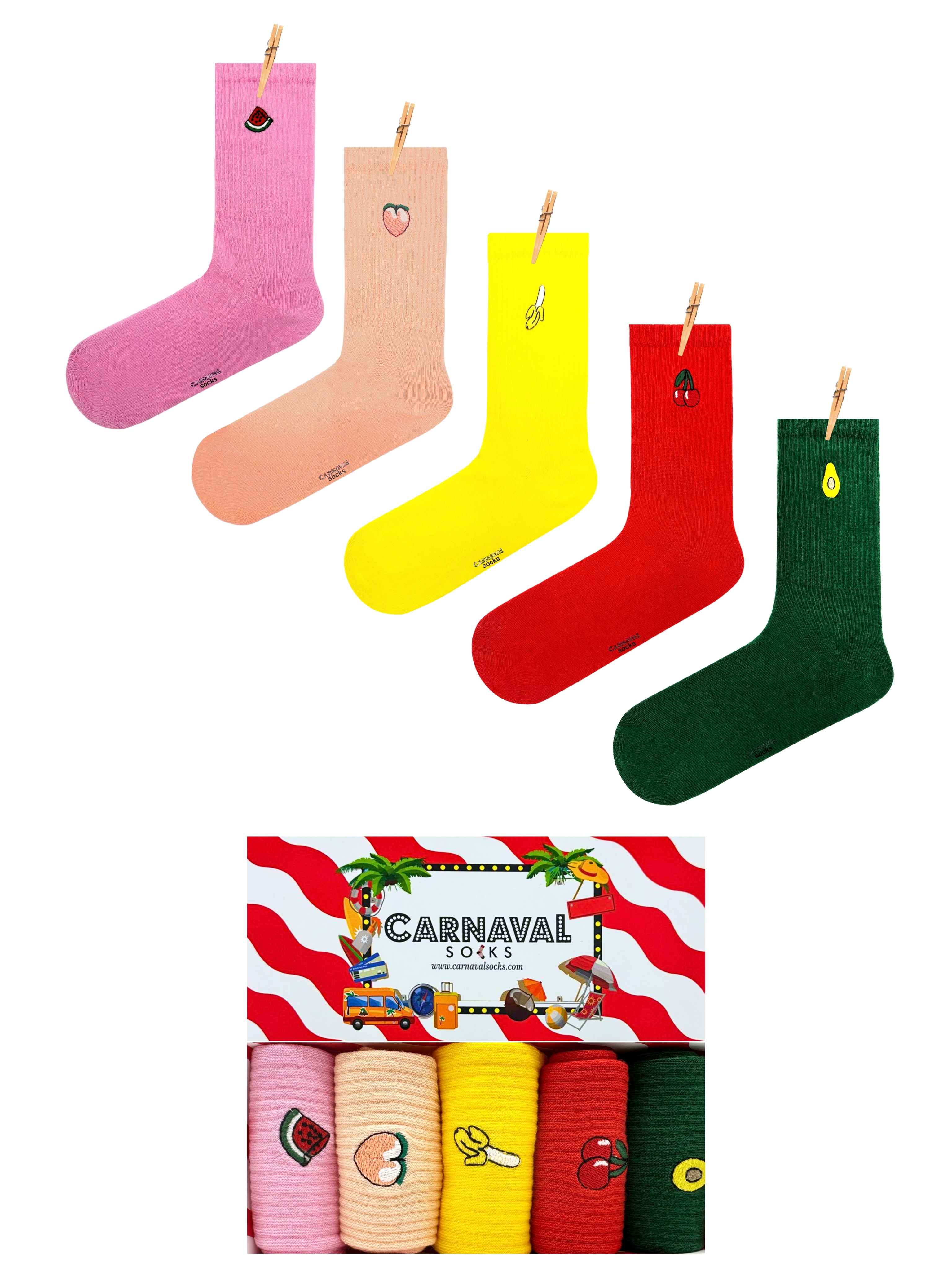 Tiny Wood’un Unisex 5’li Nakışlı Meyve Desenli Çorap Seti, canlı renkleri ve sevimli meyve işlemeleriyle günlük kombinlere enerji katıyor.
