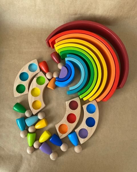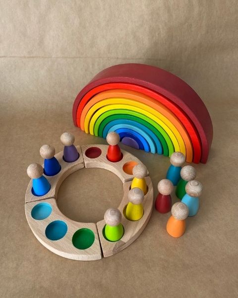 Waldorf Açık Uçlu Oyun Seti 4 Lü 12 li Gökkuşağı, Renkli Küpler Ve 12 Lı Insan Figürleri, Ahşap Yıldız Kule Ahşap Oyuncak Seti