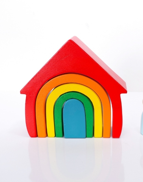 Ev formundaki tasarımı, klasik gökkuşağı yapısına yeni bir boyut kazandırır — çocuklar bu parçaları kullanarak tünel, kule, köprü, ev çatısı veya kendi hayal ettikleri şekilleri oluşturabilirler.