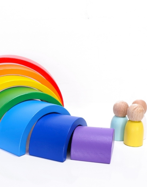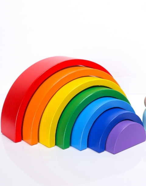 Bu gökkuşağı seti, sade ama derin anlamlı tasarımıyla çocuklara düşünerek, deneme-yanılma yoluyla öğrenme fırsatı sunar.
