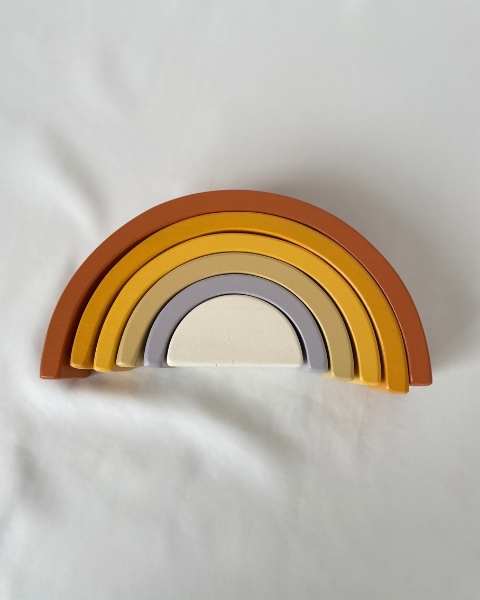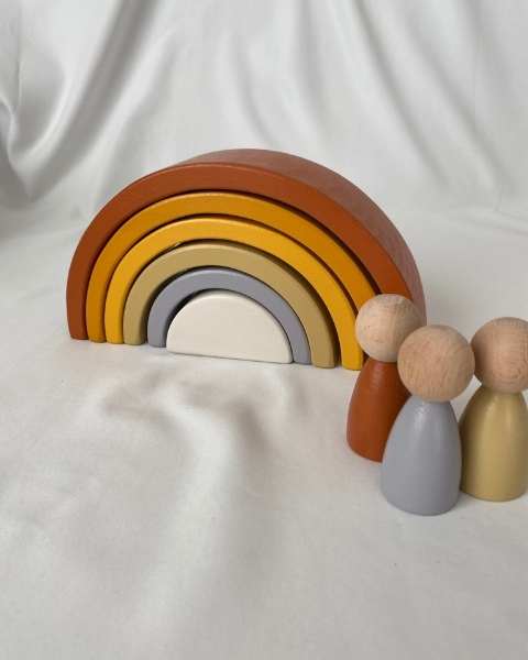 Bu doğal ahşap Waldorf gökkuşağı, hem oyun hem de dekoratif bir obje olarak çocuk odalarına sıcaklık ve doğallık katar.