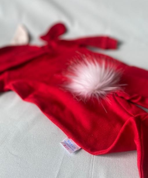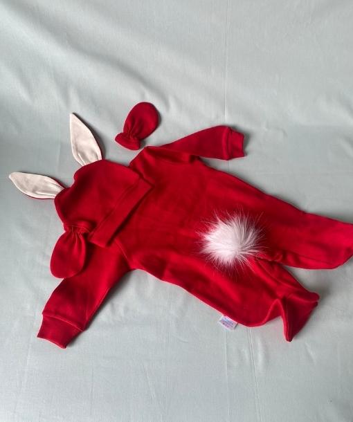 Kırmızı beyaz tavşanlı yenidoğan tulum seti, yumuşak dokulu ve nefes alabilen kumaşıyla bebeğinizin hassas cildine dosttur.