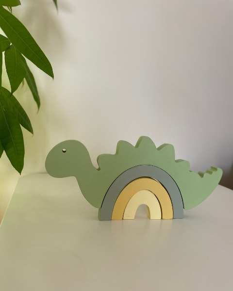 Tamamı doğal kayın ağacından üretilen dinozorumuz, 4 parçalı sade bir yapbozdan oluşur. Parçaların her biri minik ellerin kolayca kavrayabileceği şekilde tasarlanmıştır.