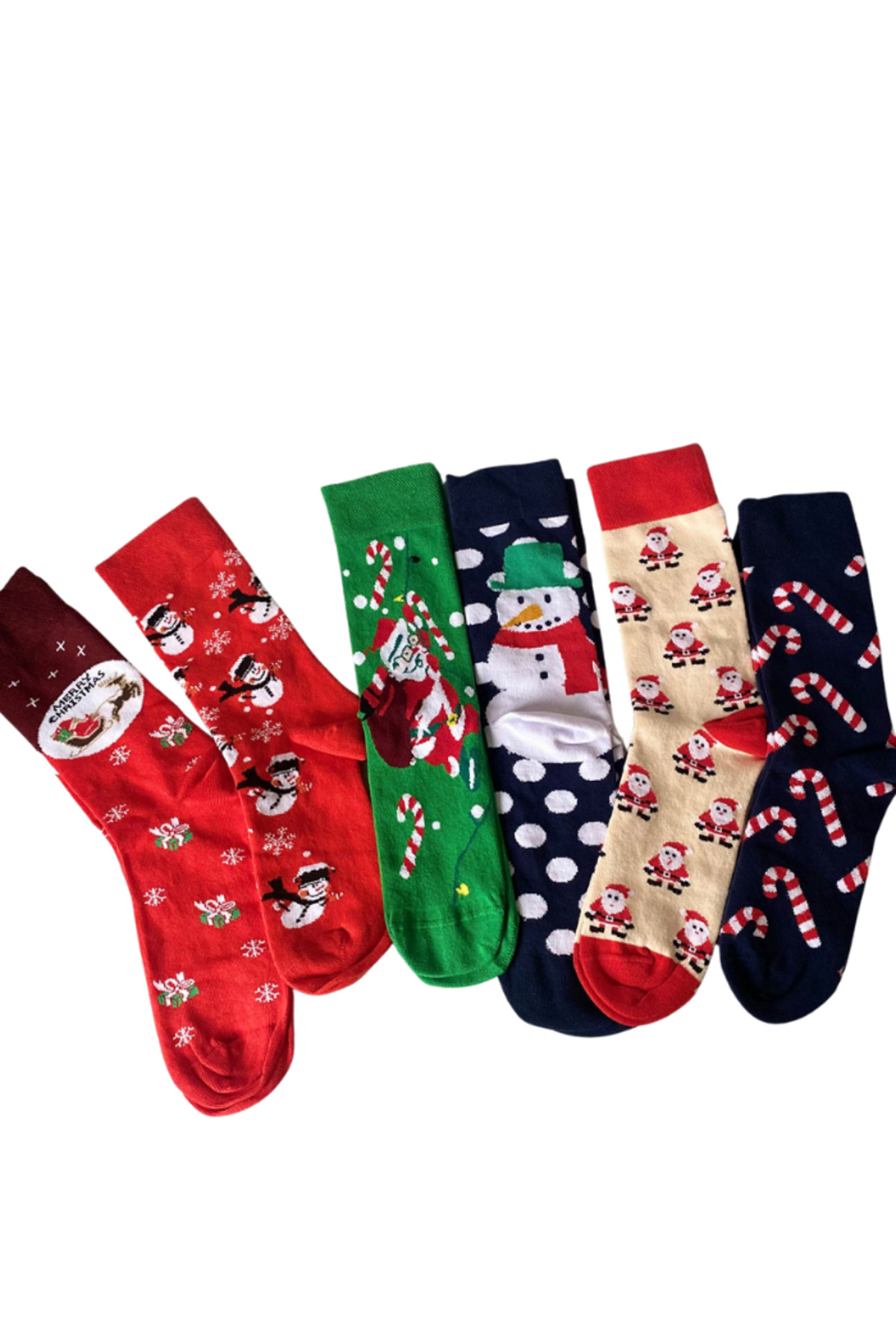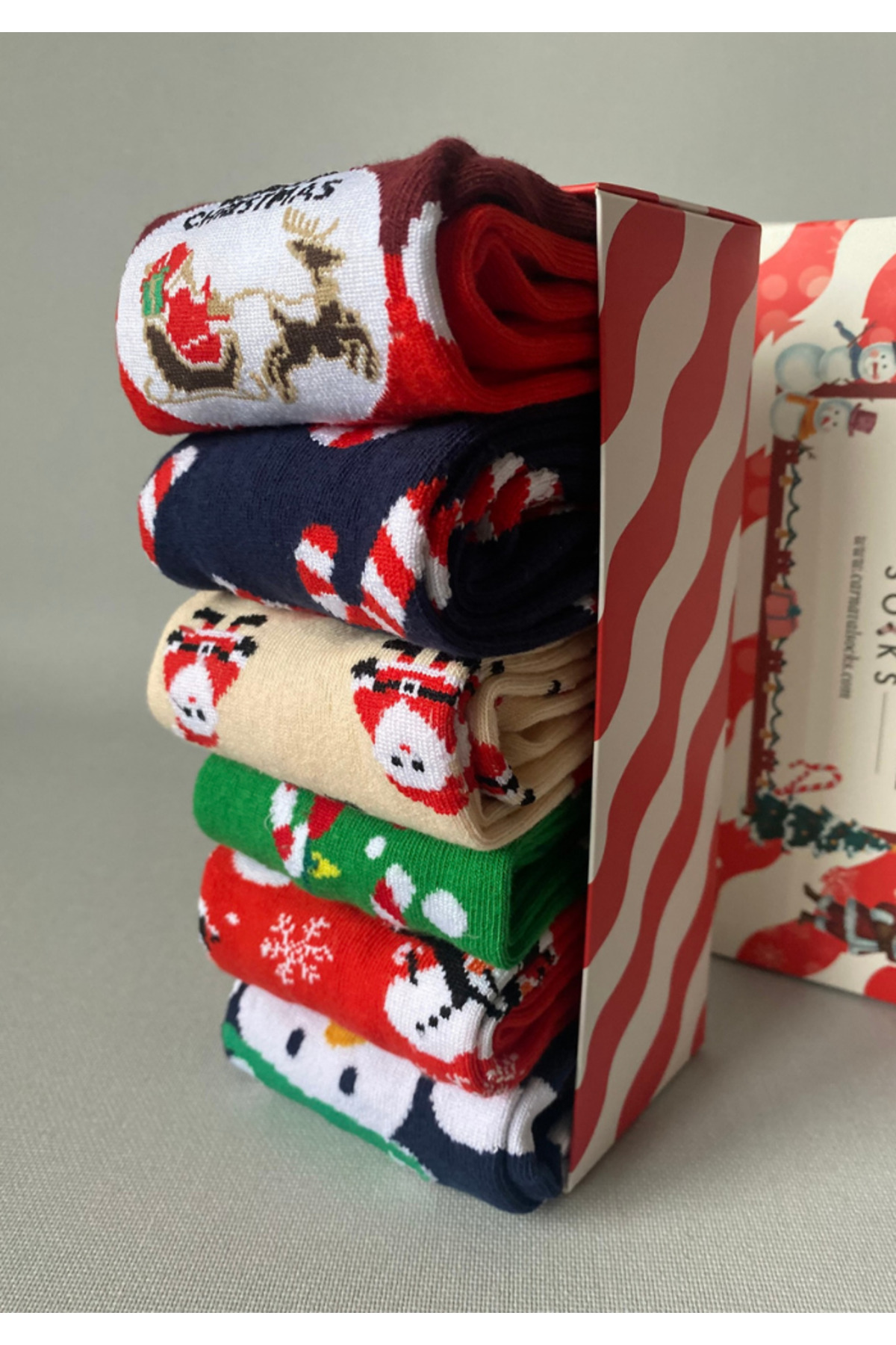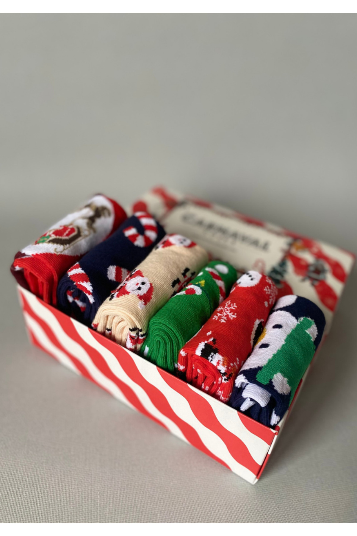 6 farklı desen: Noel Baba, geyik, kardan adam, baston şeker, kar tanesi ve yeni yıl temalı tasarımlar