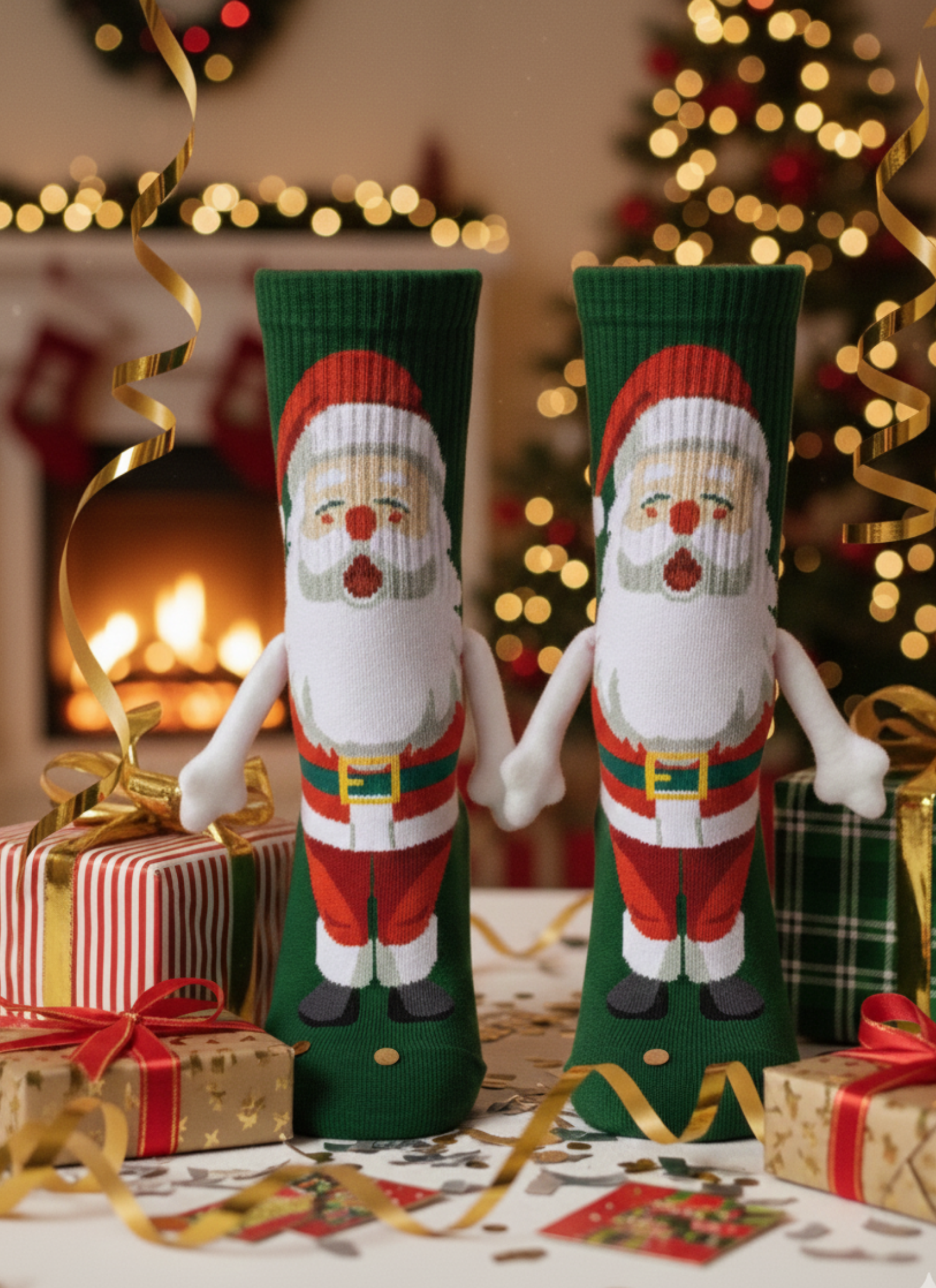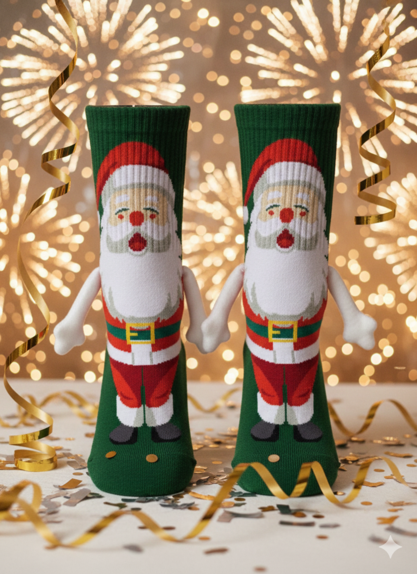 Yılbaşı ruhunu eğlenceli bir detayla tamamlayan Mıknatıslı El Ele Tutuşan Noel Baba Çorabı, özel tasarımıyla dikkat çeker.