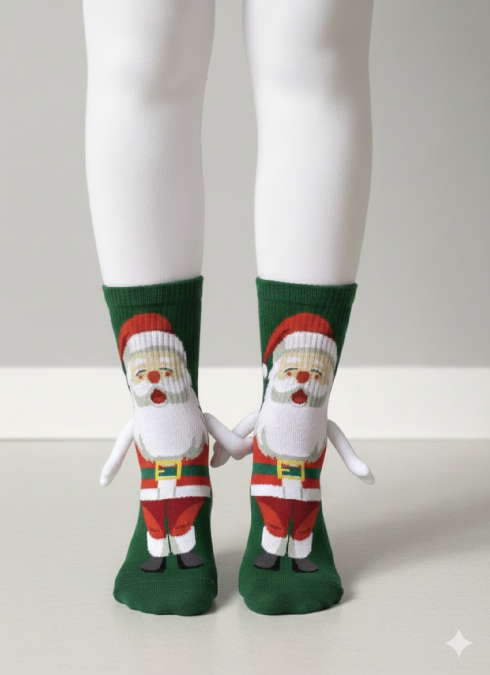 Kollardaki mıknatıs detayı sayesinde çoraplar yan yana geldiğinde figürler el ele tutuşur ve eğlenceli bir görünüm oluşturur.